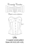 LilLy - a cupped corset pattern with under-bust option size UK8-22/ US 64-18, cup sizes A-DD(sizes UK12-16), A-D(sizes UK8-10,18-20), B-D(UK22)