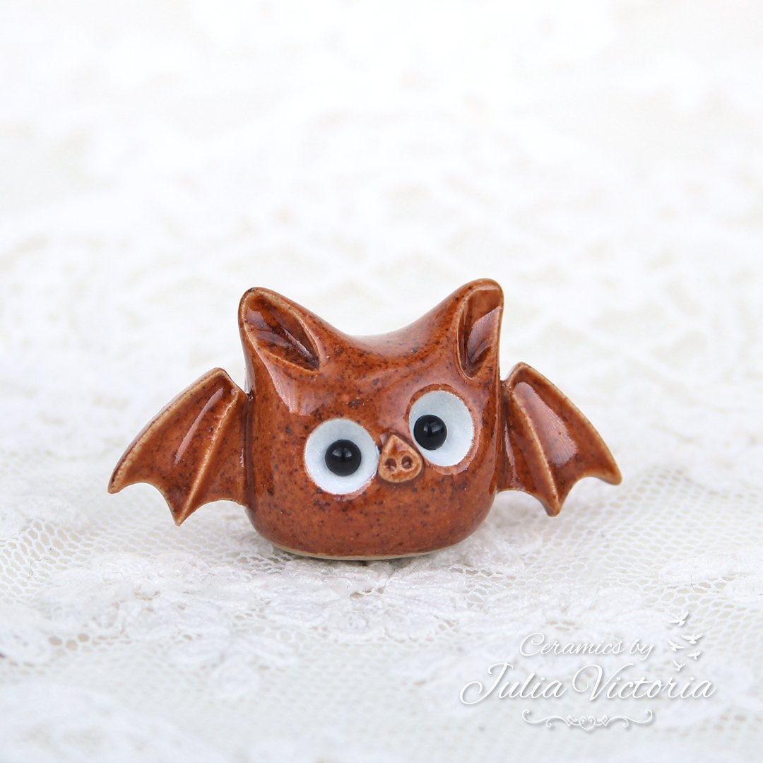 This cute little bat is looking for a new place to sleep. It is hand-sculpted in ceramics, glazed and painted by me