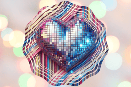 - A high-resolution PNG file featuring the 3D Valentine's Day Disco Ball Heart Design.
