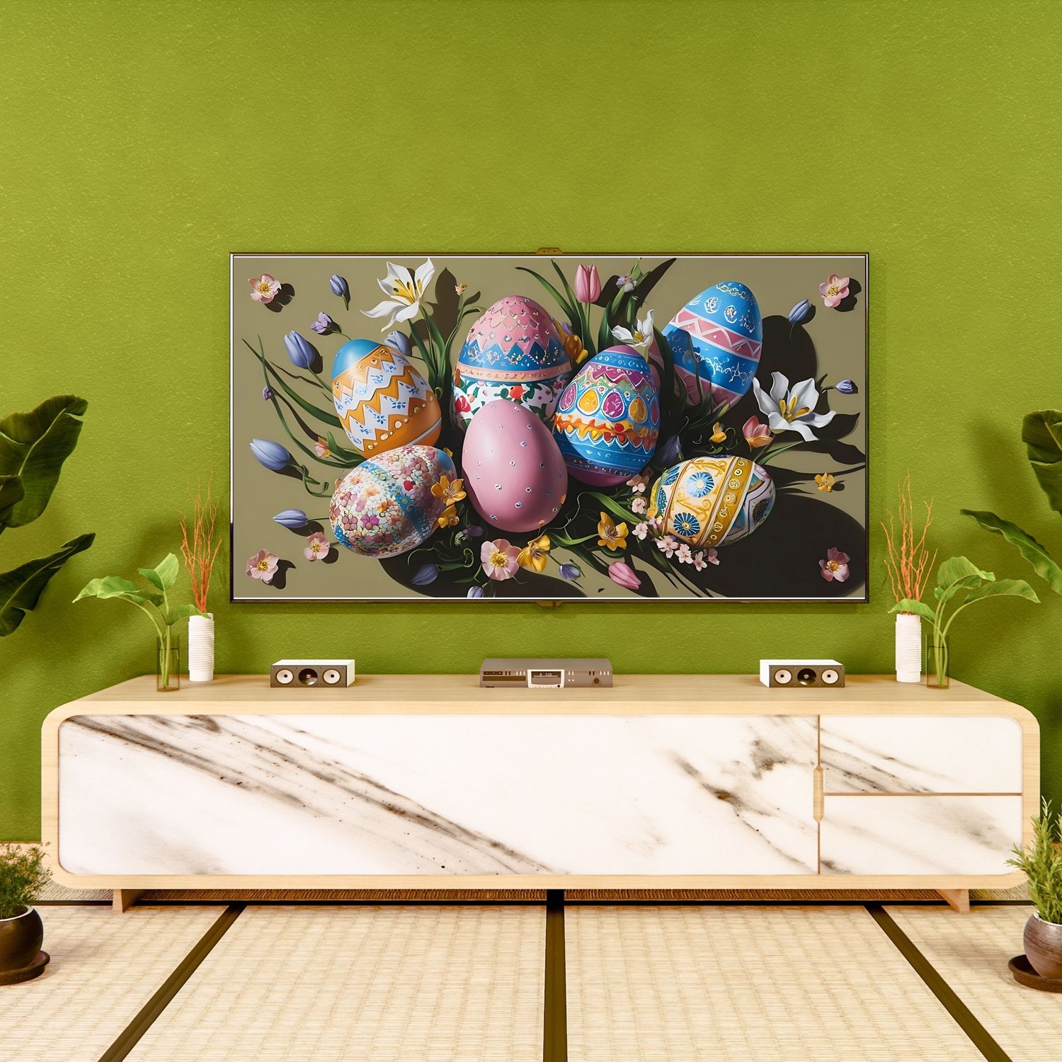 Easter Frame TV Art, Spring Easter Bunny Painting Screensaver, Easter Eggs Digital Art, Samsung Frame TV Decor, Easter Living Room Decor