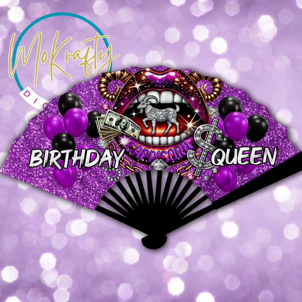 Capricorn Birthday Queen Clacker Fan PNG | Zodiac Party Fan Design | Capricorn Birthday Digital Download