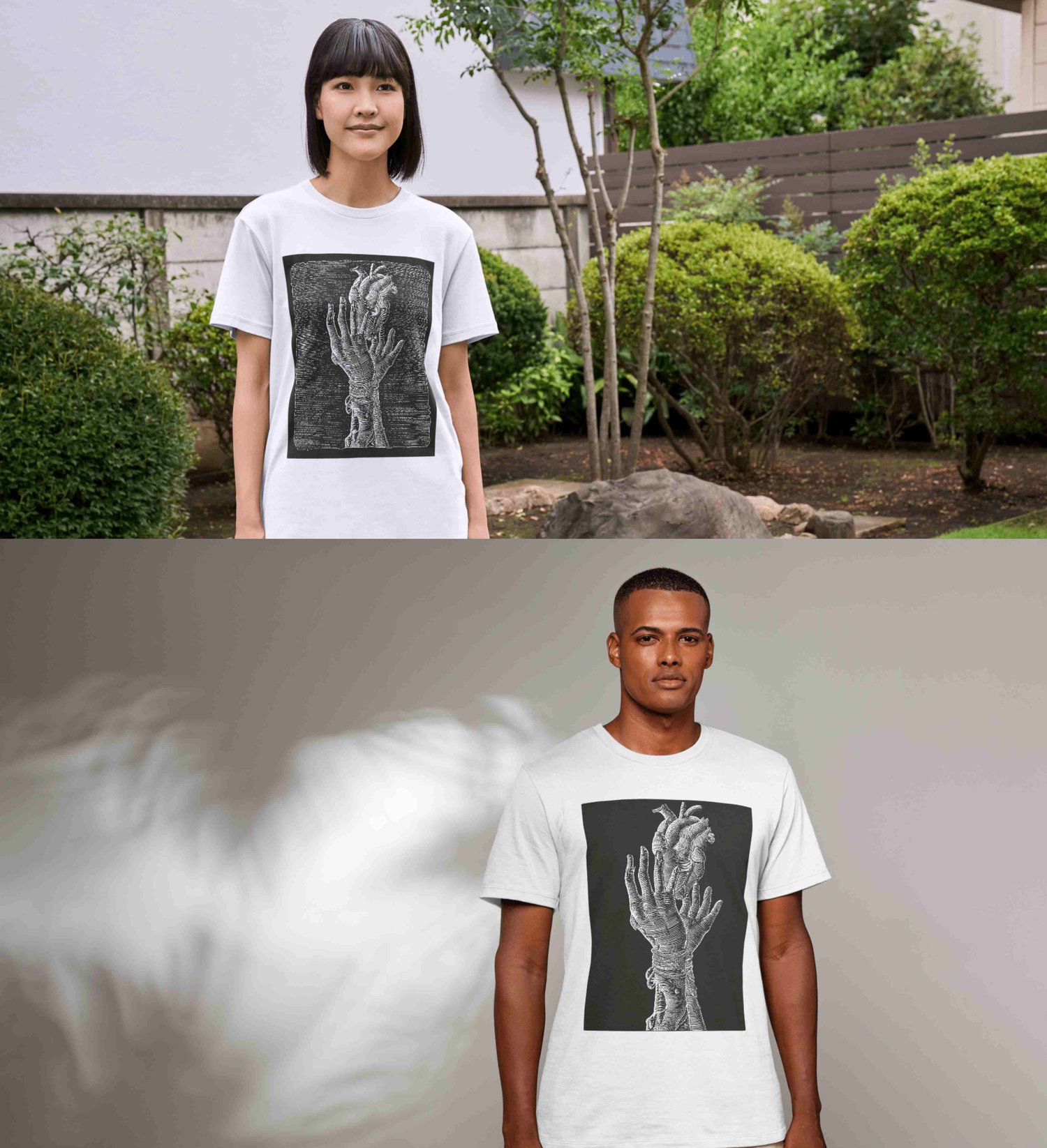 Introducing "Eternal Grasp" by Mikasa Art, a captivating digital masterpiece exclusively tailored for the discerning sole proprietor. This mesmerizing artwork, sized at 4100 x 4500 pixels, features a stunning depiction of two hands delicately cradling a human heart, intricately crafted with a series of bold black and white lines, creating a striking and symbolic design.