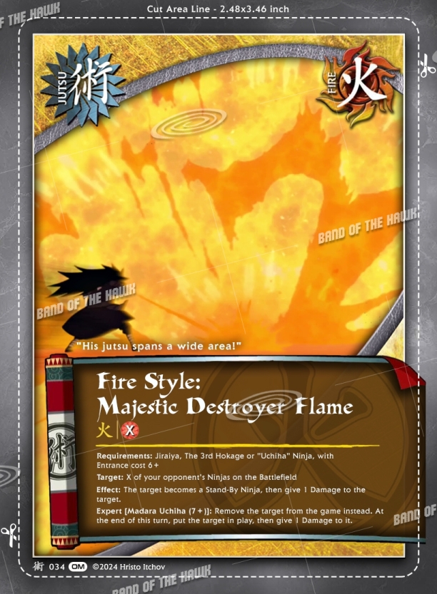 j034 - Fire Style Majestic Destroyer Flame Jutsu Jutsu card from our Obito & Madara card set for Naruto CCG.