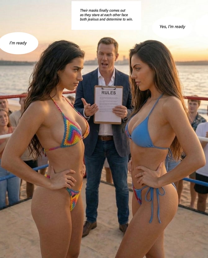 Enter Mia, a rival who matches Serena in both looks and confidence. Like Serena, Mia is drawn to the ring and agrees to face off against her. The promoter seizes the opportunity to pit the two stunning women against each other, sensing the spectacle it will create. What follows is a fierce and determined catfight, as both Serena and Mia refuse to back down, each driven by pride and the desire to prove their superiority.