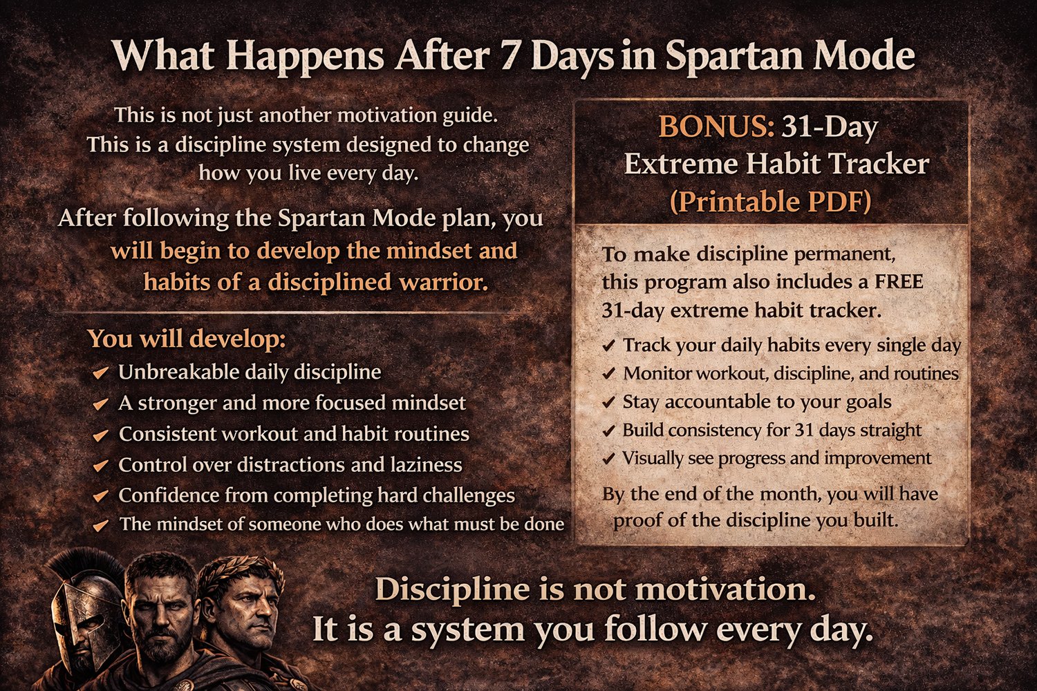 7-Day Spartan Discipline Plan: Build a Warrior Mindset + (Includes FREE 31-Day Habit Tracker)