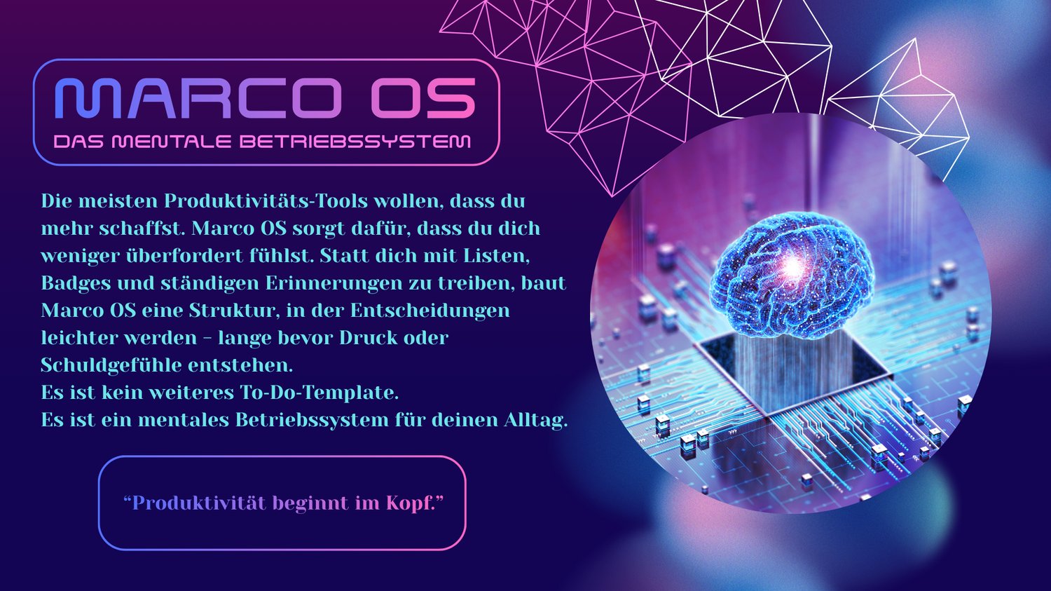 Marco OS ist ein mentales Betriebssystem für Menschen mit hoher mentaler Belastung.