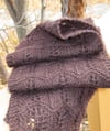 In order to achieve symmetry in the lace patterns, this scarf is worked in two pieces from the ends toward the centre. The two pieces are then grafted together using kitchener stitch.