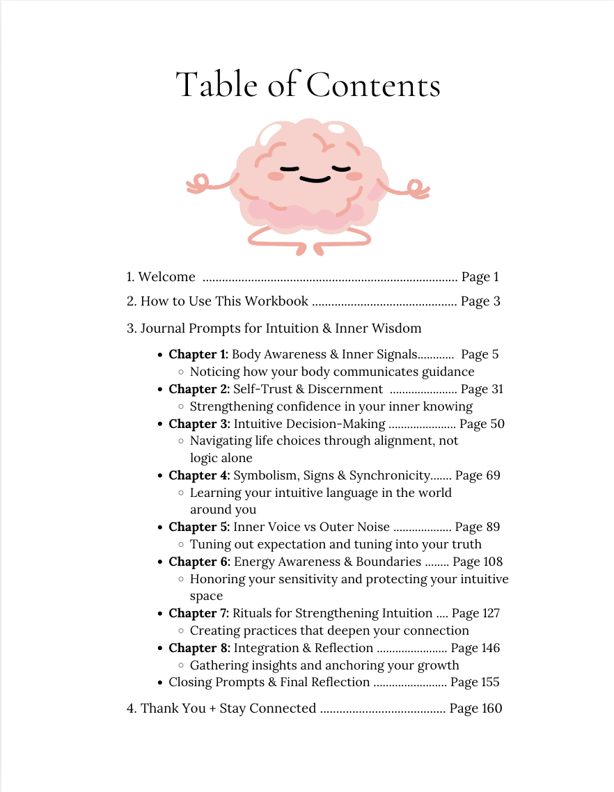 This beautifully crafted ebook is designed to help you slow down, listen within, and strengthen the voice of your intuition. Through guided prompts, reflection exercises, and gentle invitations to explore your inner world, you’ll uncover the wisdom already living inside you.