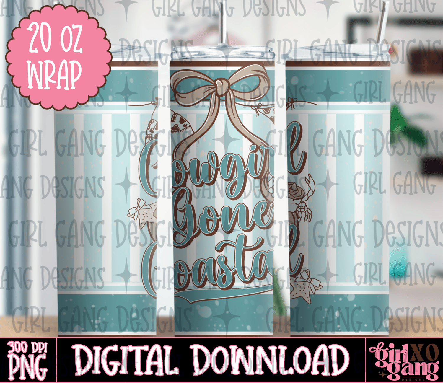 Coastal cowgirl 20 oz tumbler wrap png beach country