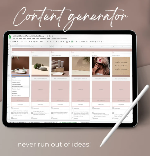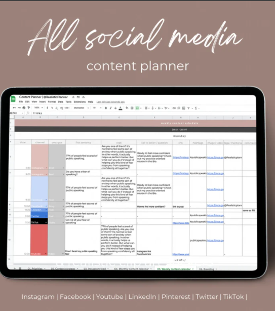 ▪️ Monthly content planner that allows you to decide on one month's topics that you can use across all of your social media platforms,