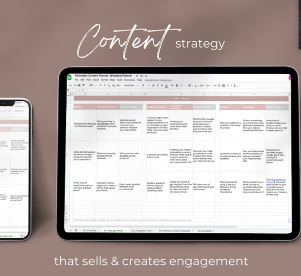 ▪️ Content strategy sheet, which includes prompts for successful social media posts, use them as a starting point for your content pillars,