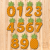 A collection of decorative numbers inspired by tropical pineapples, with a cheerful, summery style perfect for creative projects and themed decorations. Each number incorporates the characteristic pineapple pattern and a crown of leaves on top, creating a fun and eye-catching design.