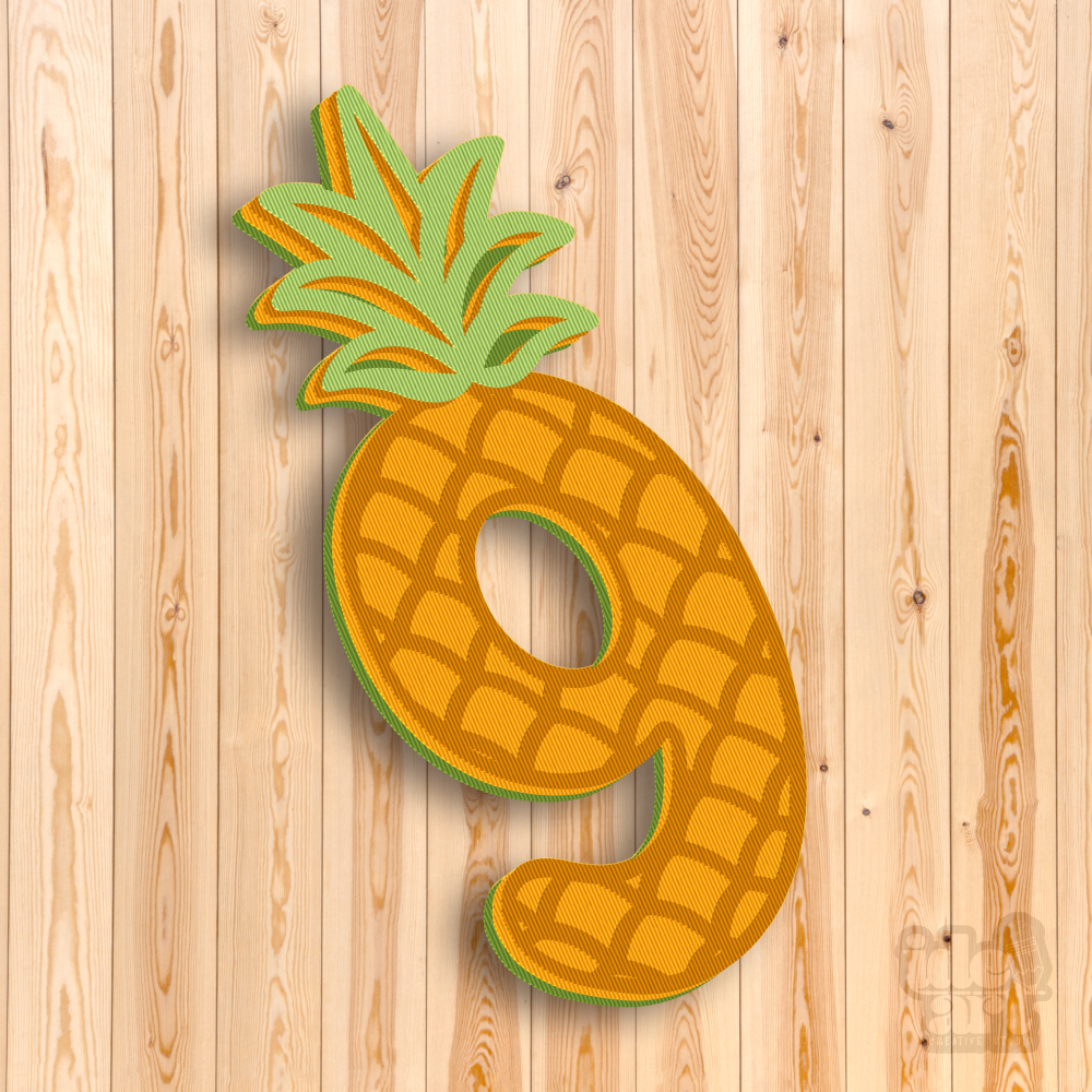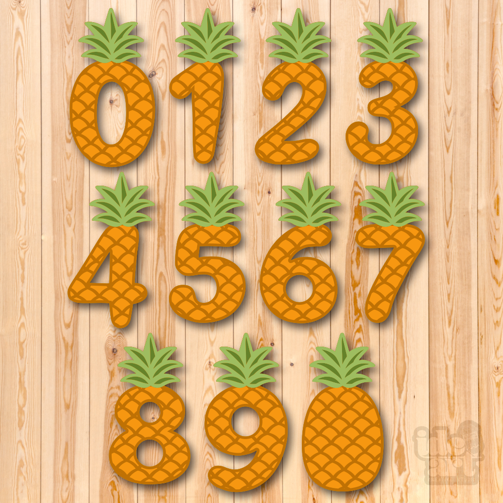 The pack includes the numbers 0 through 9, plus an additional full pineapple, allowing you to create custom compositions for various projects.