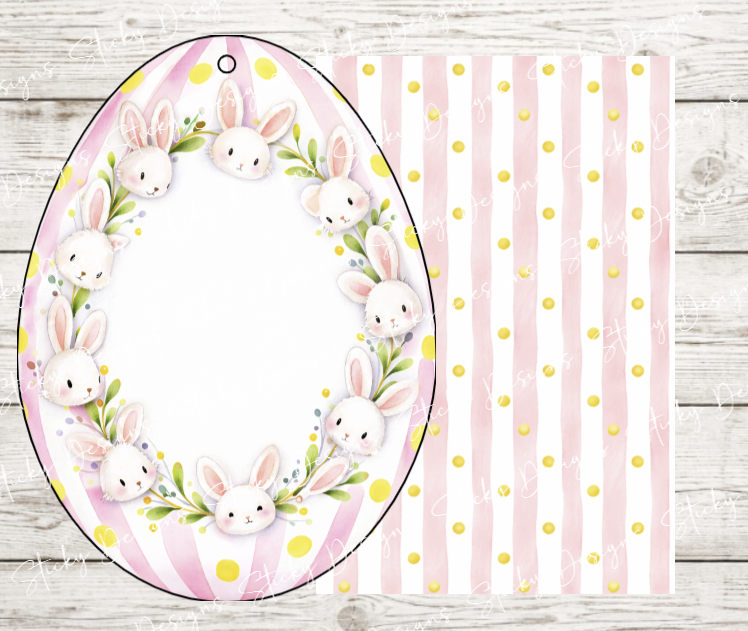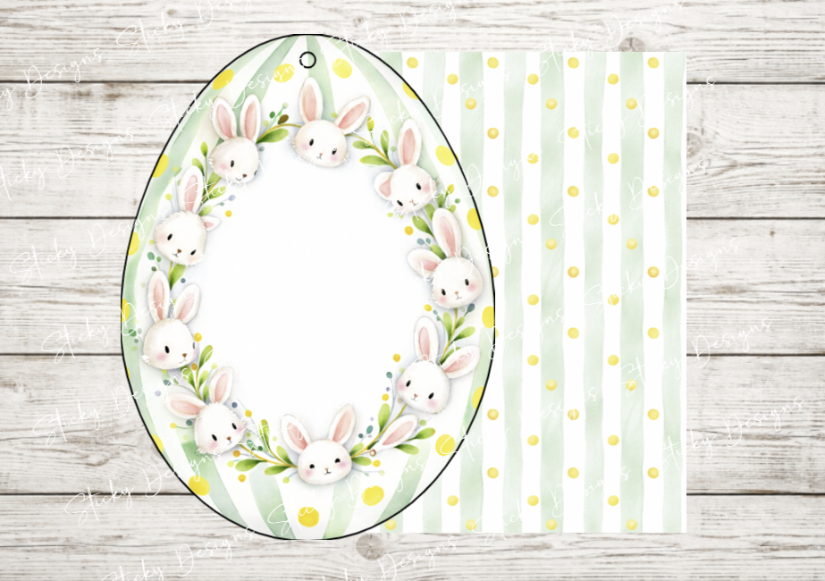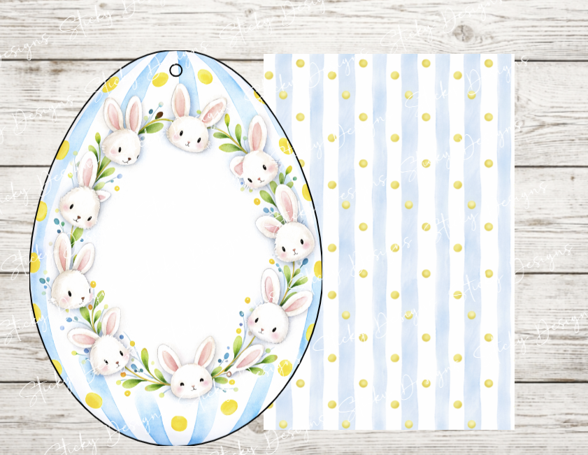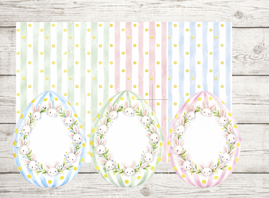 10 PNGs 3 backing designs in pink, blue and green, 3 egg designs to fit the Hanging egg shape from Woodform Crafts product no WC2293 3 eggs on their own and a cute bunny head