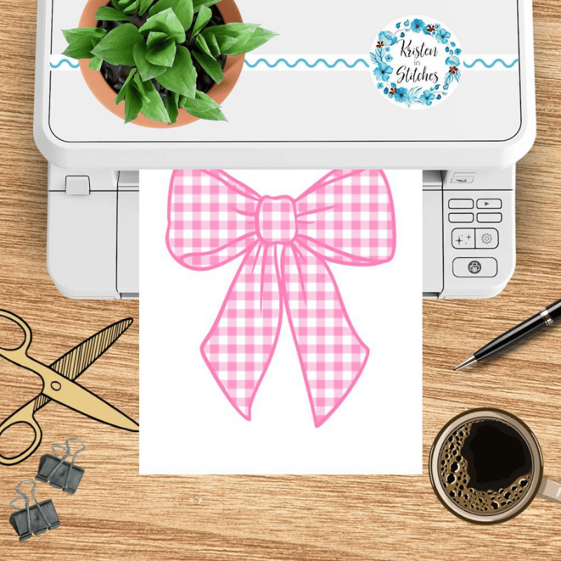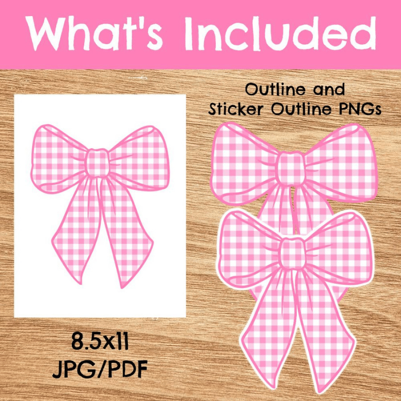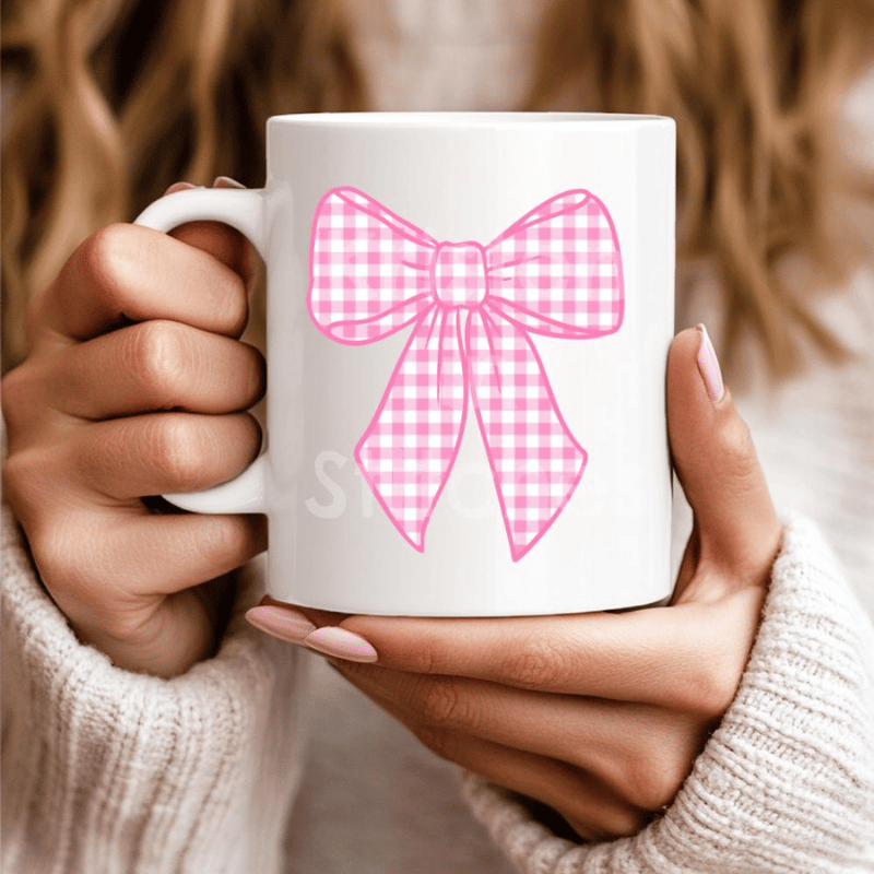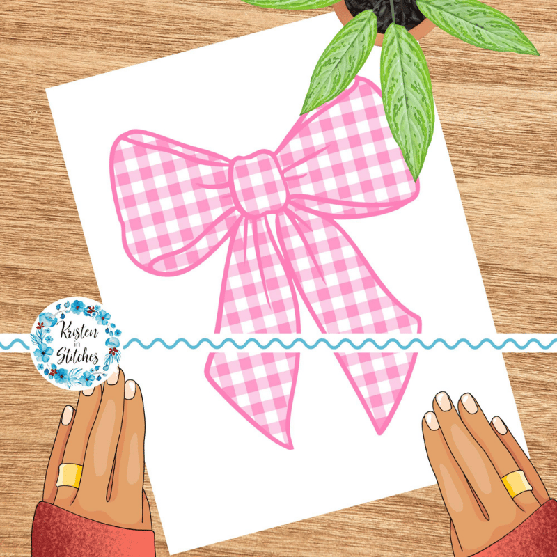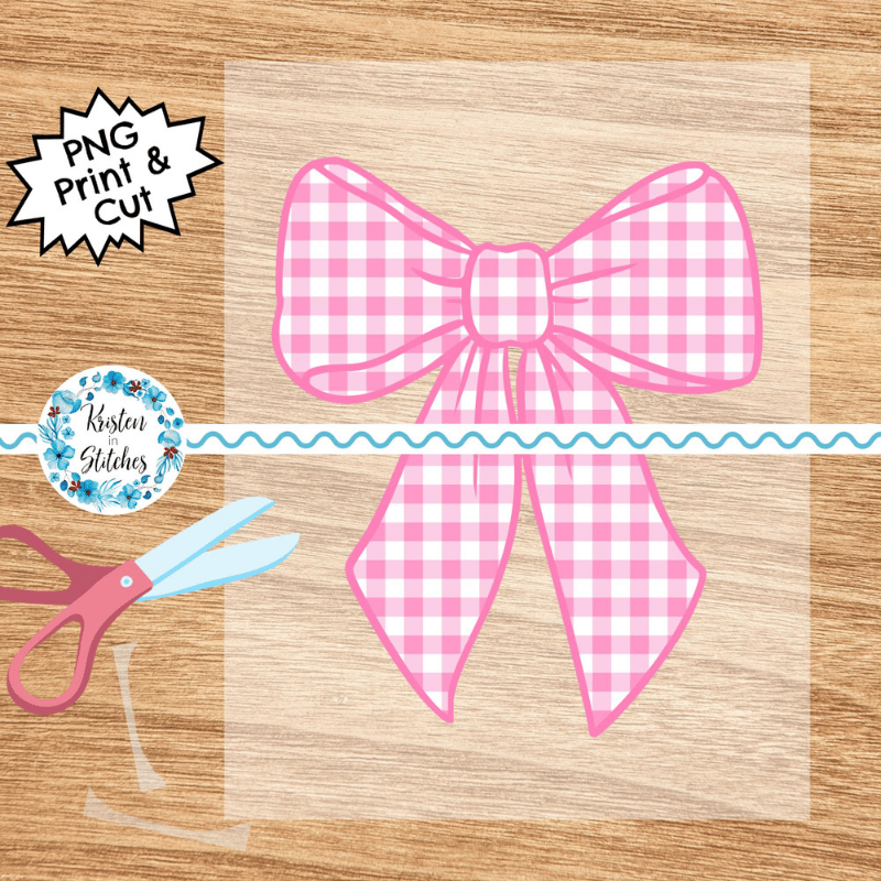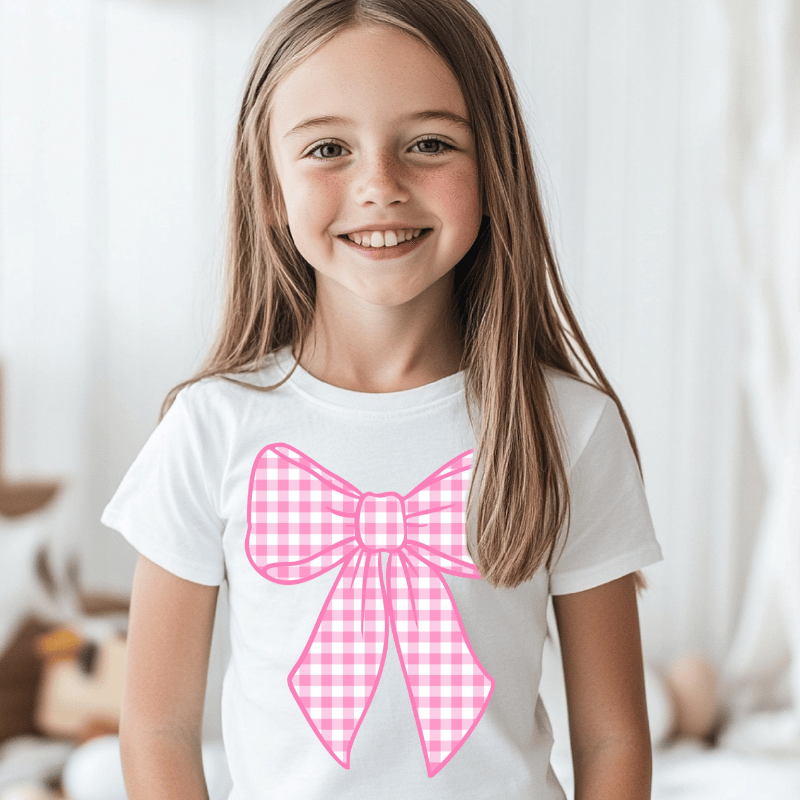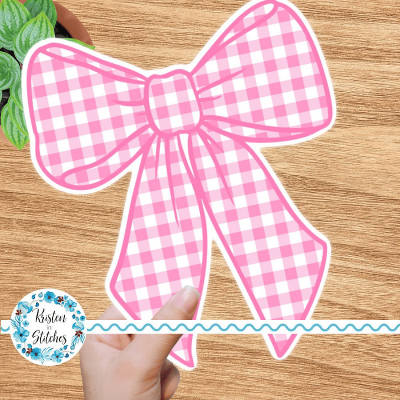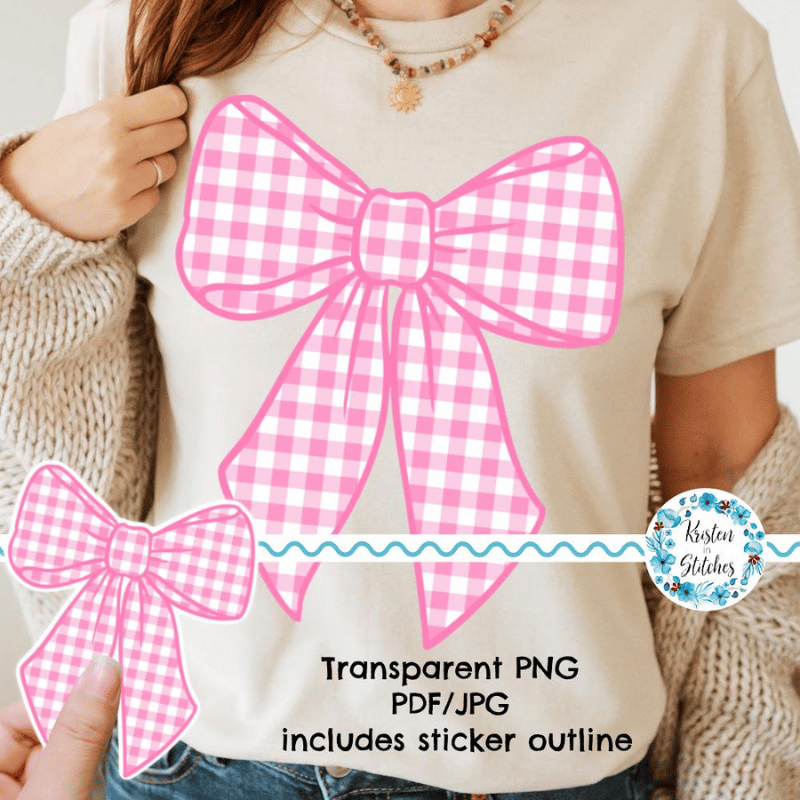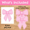 Pretty in Pink Gingham Bow PNG, Large Printable Sticker or DTF Iron On Transfer Transparent File, DIY Print & Cut, Trendy Ribbon Shirt Applique