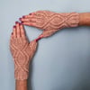 Elegant travelling twisted ribs are fun to work and give impressive results. Palms are worked in twisted rib for a perfect fit, and the stretchy design will accommodate a range of different sizes. Why not knit a longer hat brim that can be folded double, or make extra long mitts to stretch right up the arms?