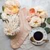 Finished sock dimensions: 7.5” (19 cm), 8.75” (22 cm), 10” (25.5 cm) circumference (Note: most people like their socks snug, so choose a finished sock size that is slightly smaller than your actual foot)