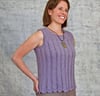 Creating an elegant garment can be almost effortless with the right pattern. The simple beauty of this polished sleeveless top springs from two variants of razor lace pattern. The push and pull of yarn overs and double decreases create delicate peaks and valleys at the bottom trim. Worked flat in a single piece with a back seam and buttons at the back neck placket, you’ll get all the pleasure of knitting lace with none of the stress of seaming it. Silver Valley is a perfect weight for transitional wearing.