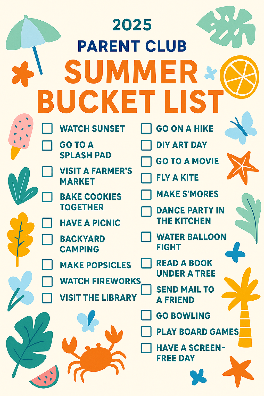 ✨ Make this summer fun, intentional, and totally screen-free with the Parent Club 2025 Summer Bucket List!