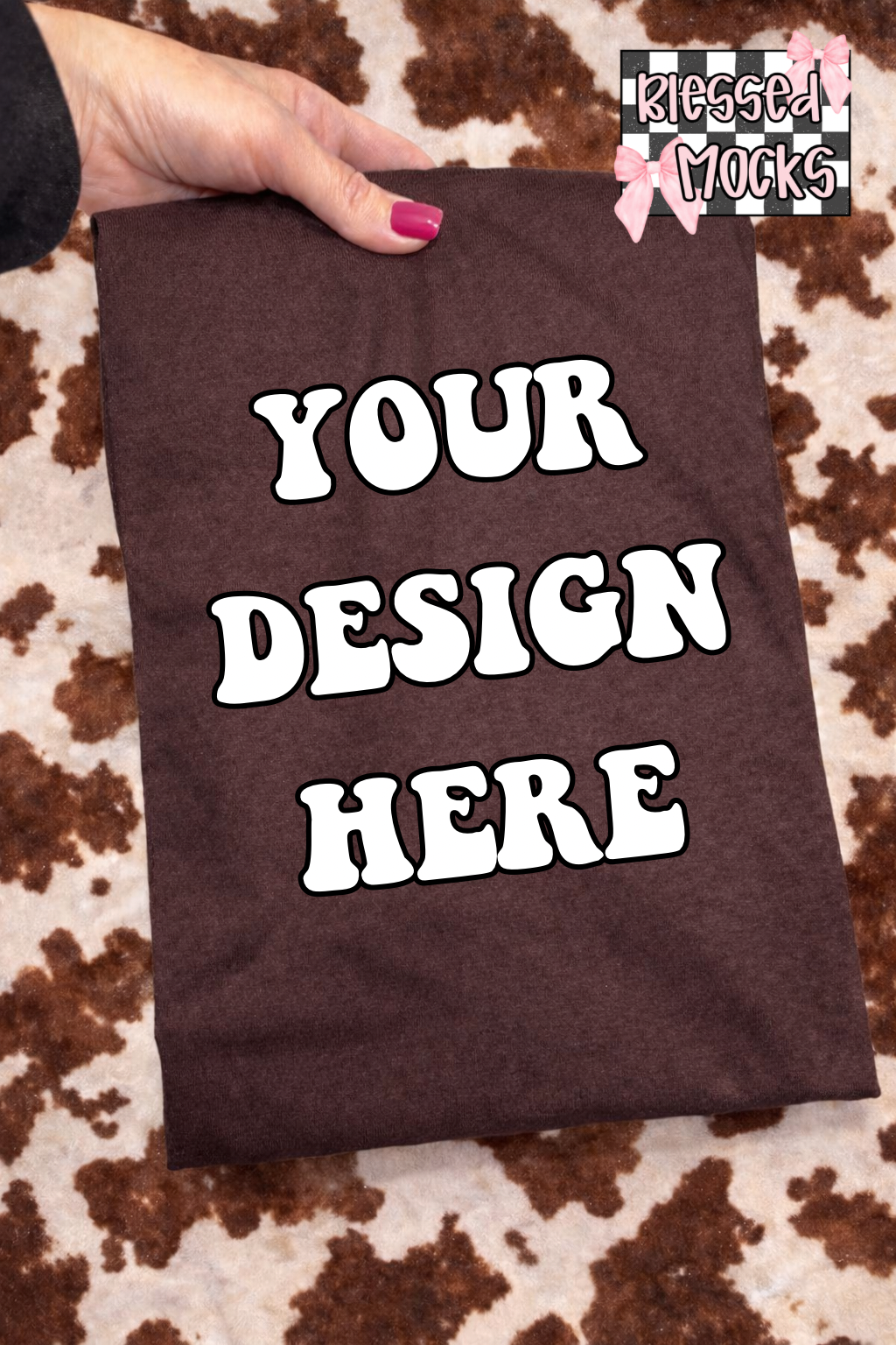 Gildan chocolate brown cow print background T-shirt Mock Up