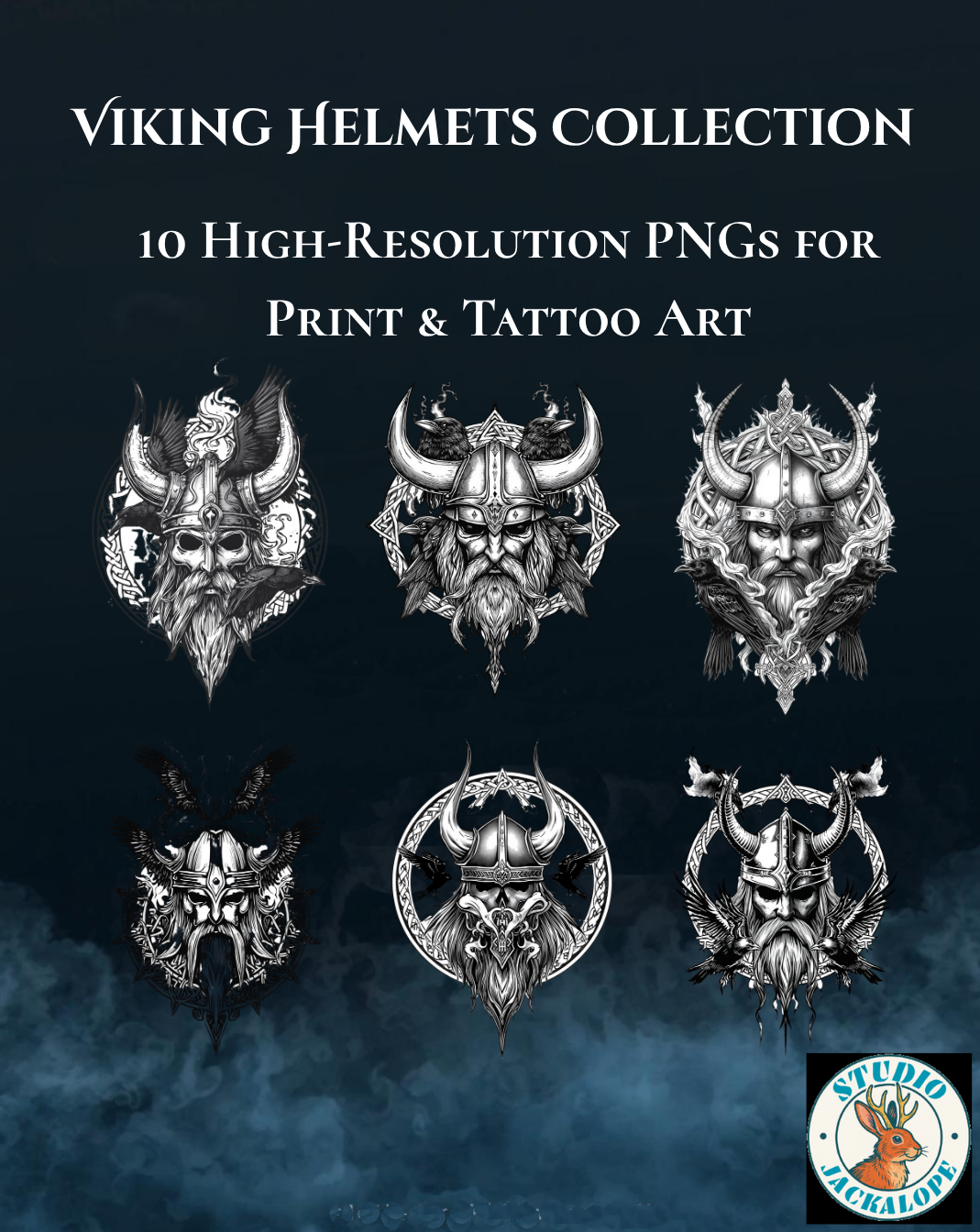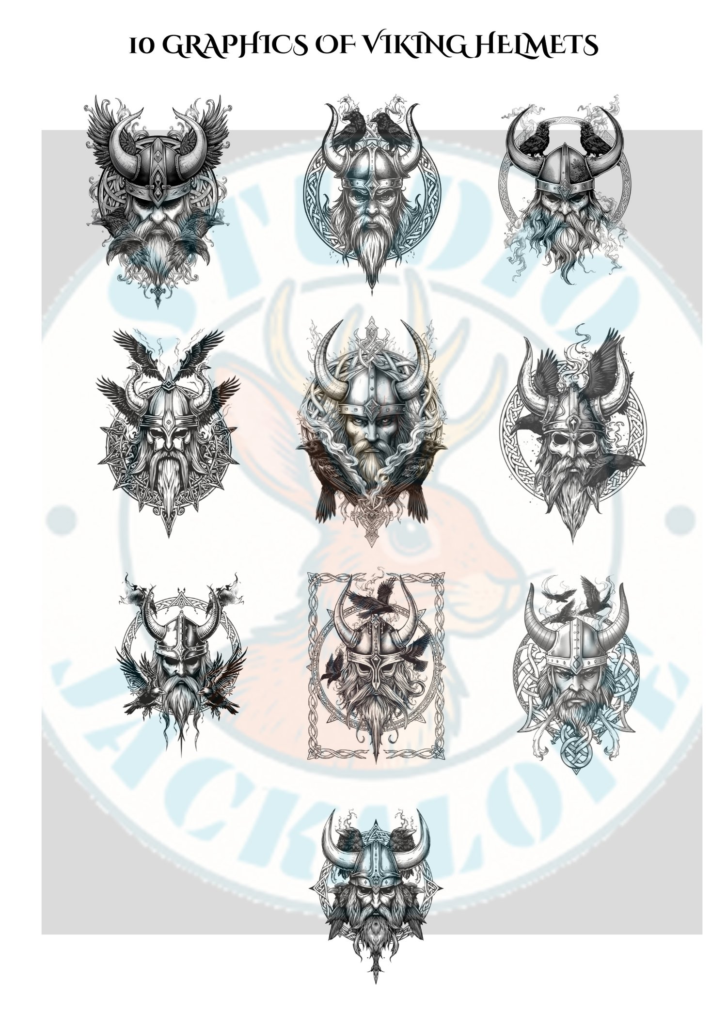 Viking Helmets Collection 10 High-Resolution PNGs for Print & Tattoo Art