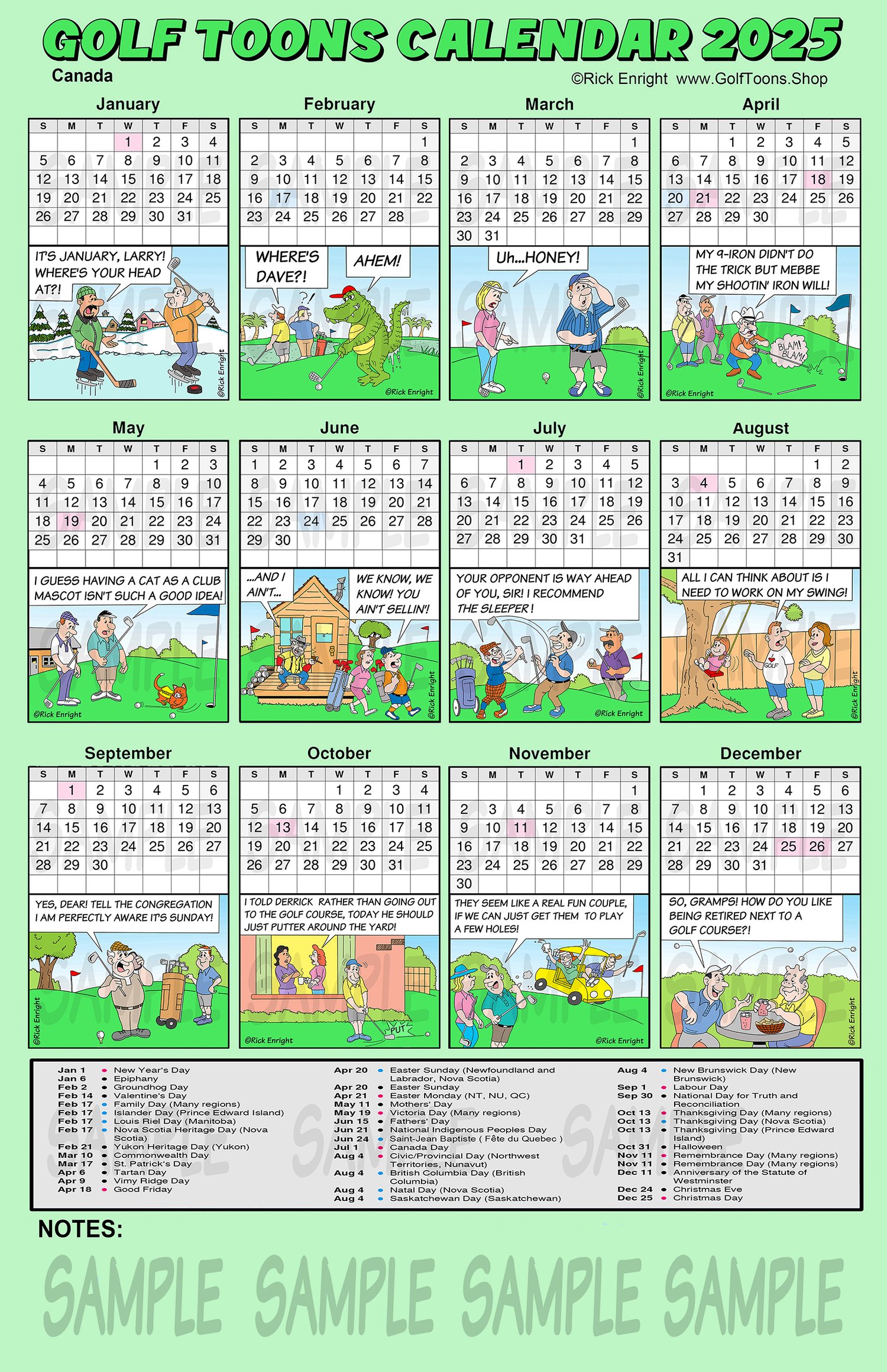 Golf Cartoons Poster Calendar 2025 CANADA