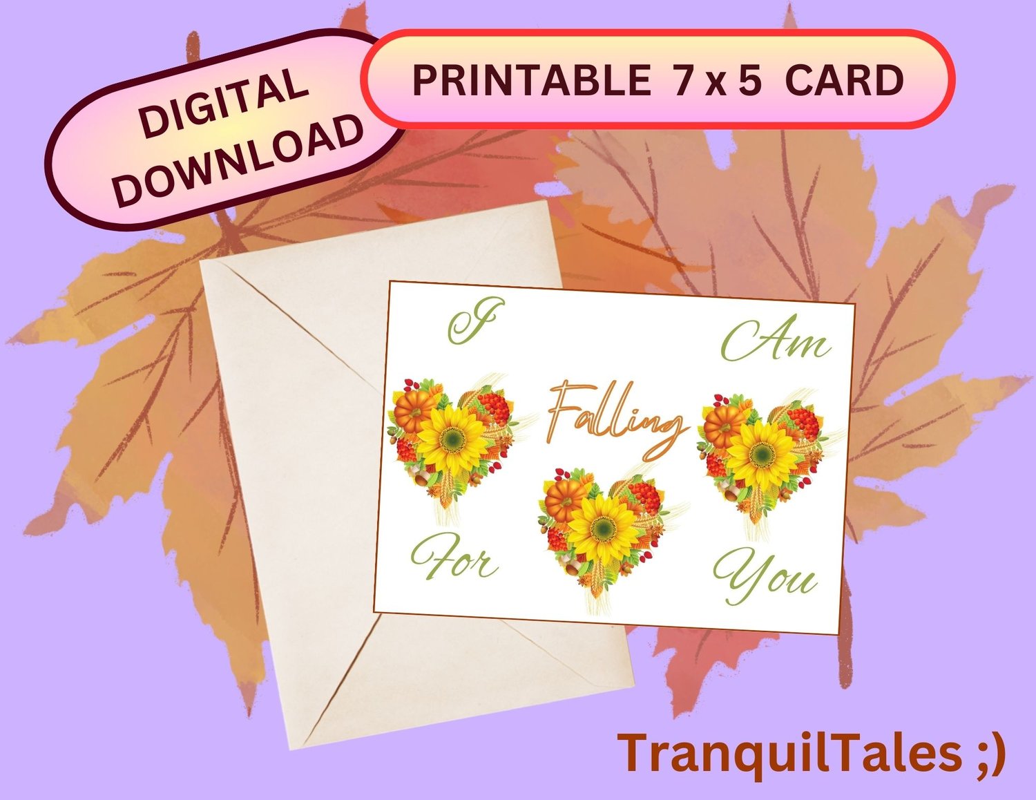 I AM FALLING FOR YOU CARD - 7" x 5" - PDF FILE - AUTUMN & FALL - THANKSGIVING SEASON