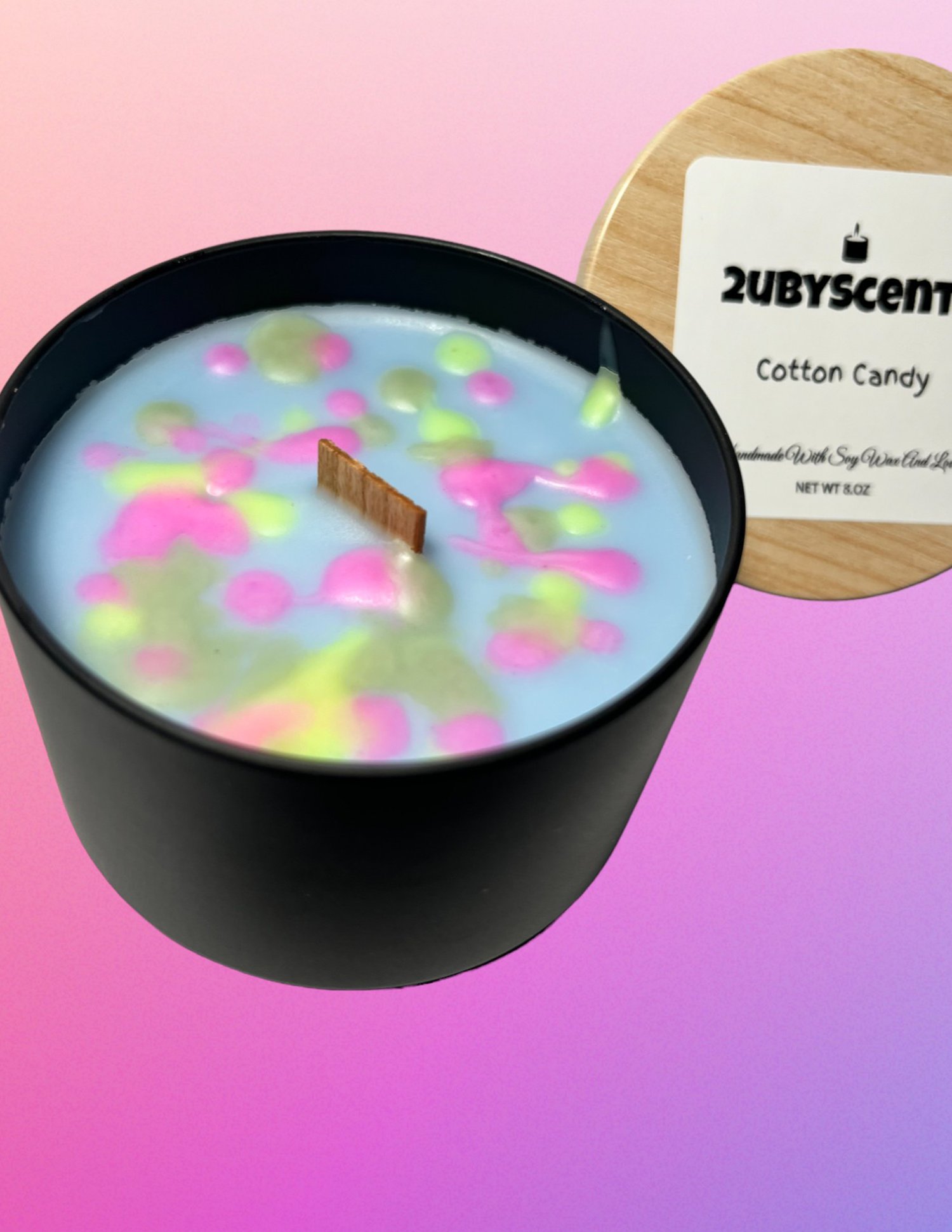 Indulge your senses with our cotton candy scented 8 oz candles, perfect for creating a cozy atmosphere in any room.