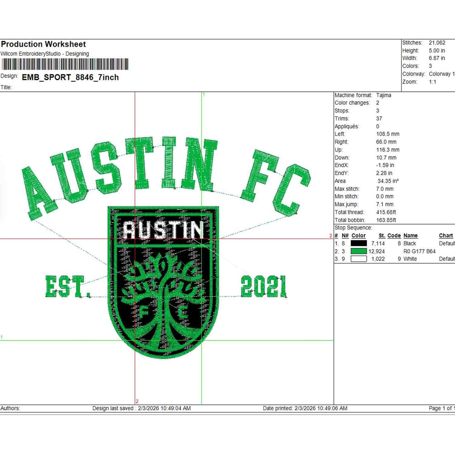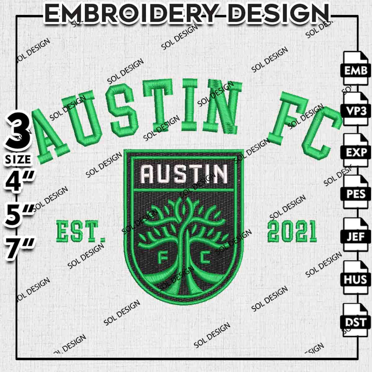 MLS Austin FC Est 2021 Logo Embroidery Designs, Austin FC Embroidery Files, MLS Austin FC Soccer Team Logo Embroidery, Major League Soccer Machine Embroidery Design, Digital Download
