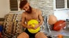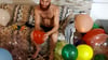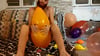 He also blow one and let it deflate few times.