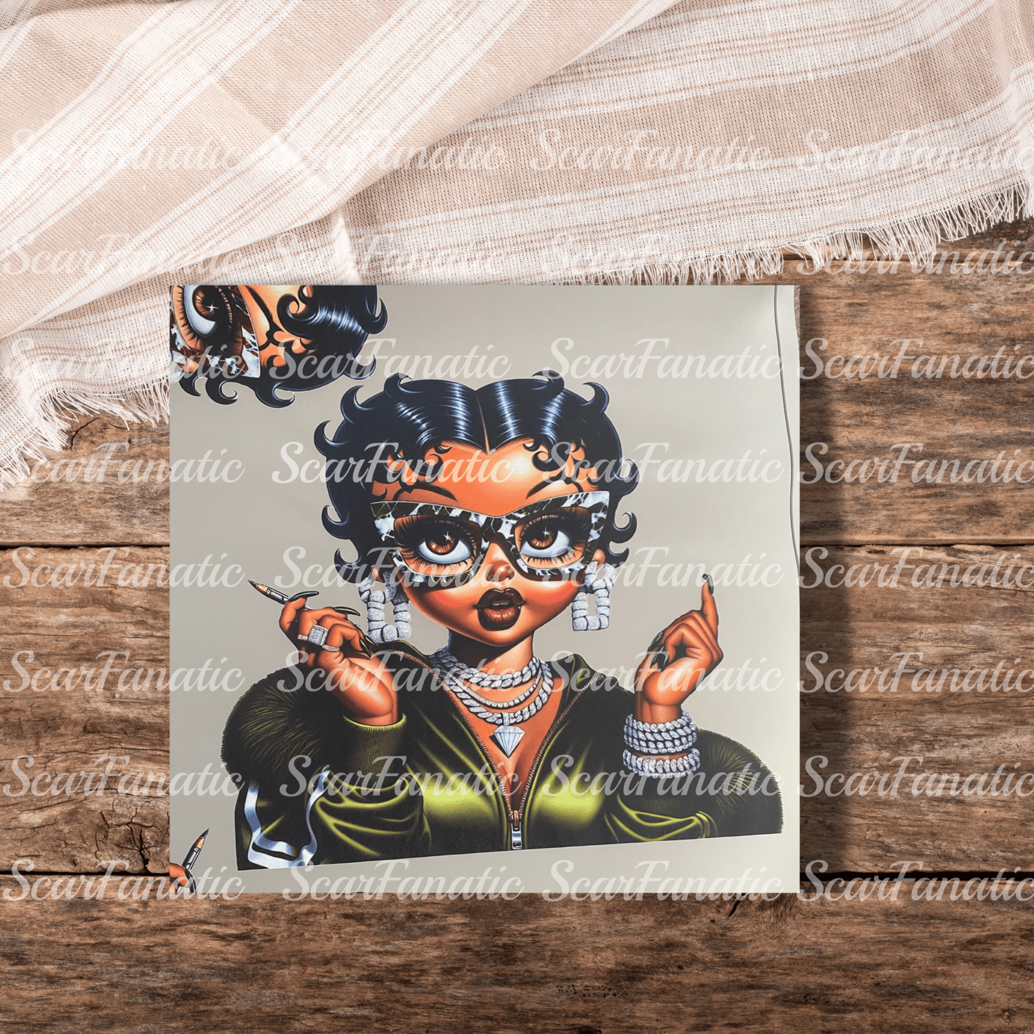 Green Betty Boop with Marble Glasses DTF Transfer by Size