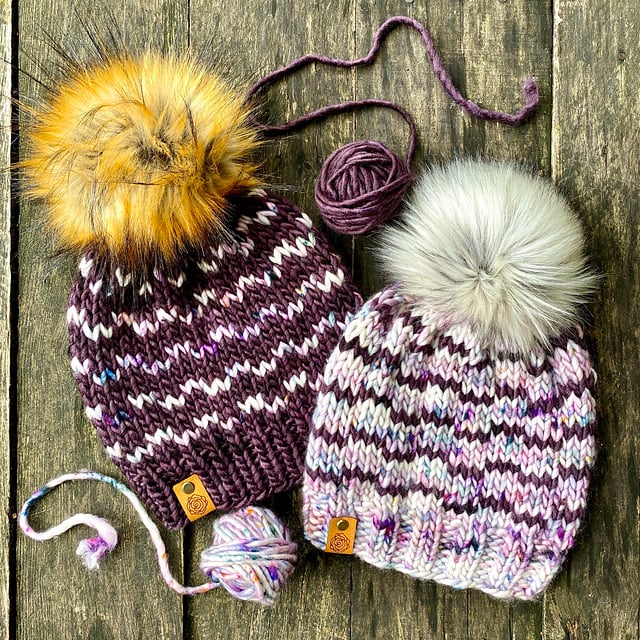 These little ripples are my kind of waves. I love the ocean, but only when it’s calm. Choose your kind of waves and the brim to go along with it. A stranded color work design to showcase indie super bulky yarn.