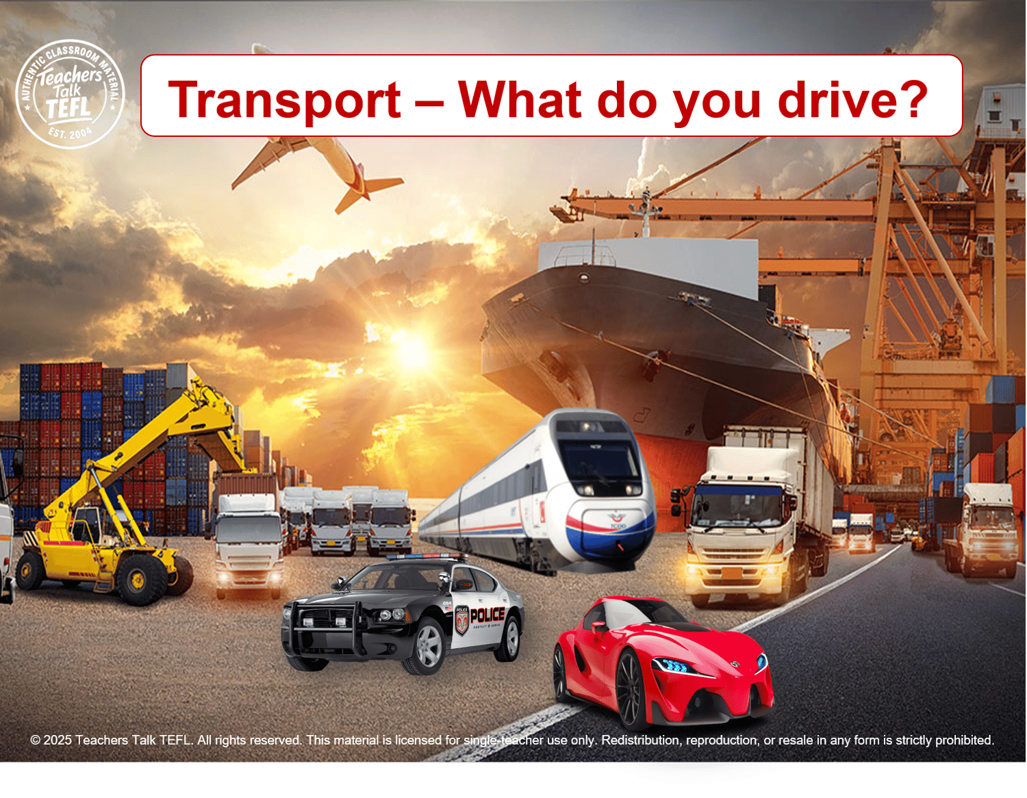 A dynamic and visual lesson packed with transport vocabulary, class questions, and engaging speaking tasks. Students build sentences, answer personal travel questions, and practise fluency through interactive, real-world tasks.