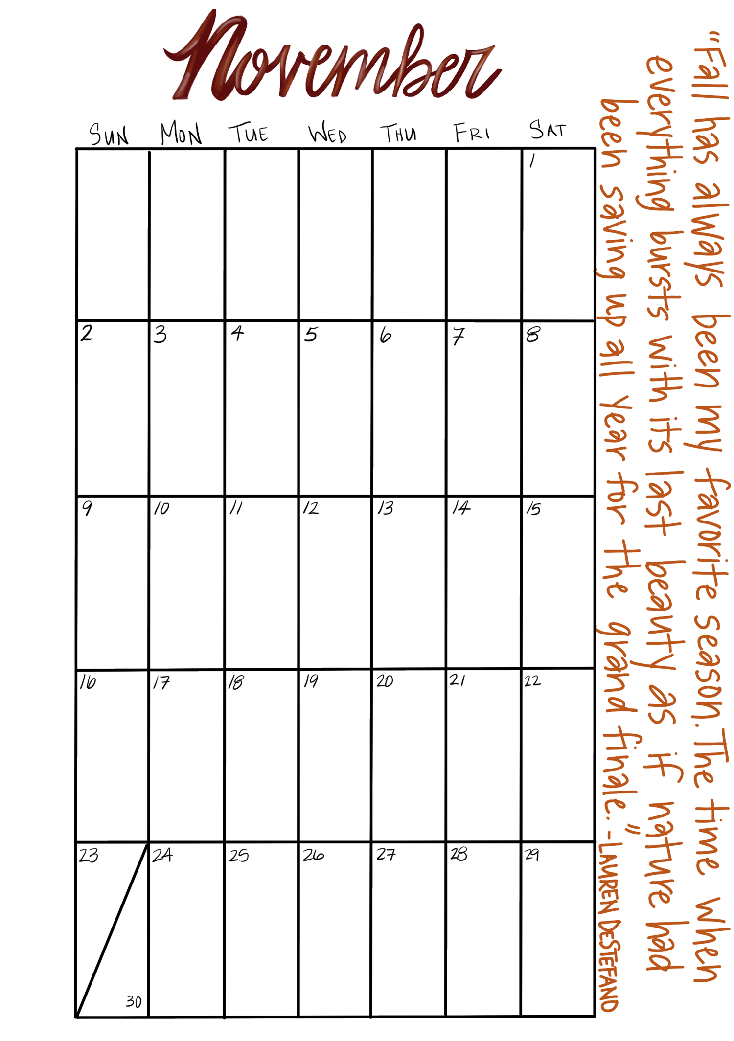 A5 + A6 November Calendar - Connor's Version (Quote Edition)