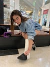 Carol calls a friend of her and goes to a near shopping mall. First, she walks with the help of one crutch but later without it as she gains more confidence. She heavily rotates and turns outside her casted foot in a lovely movement!