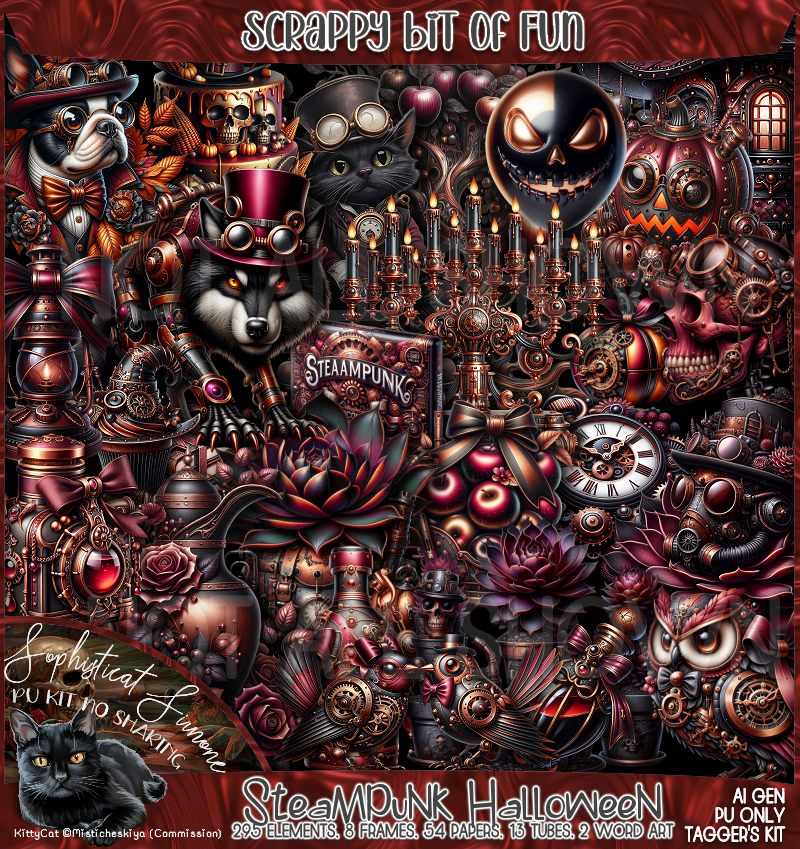 Step into a world where eerie elegance meets industrial intrigue. Steampunk Halloween is a richly detailed digital scrapbooking kit designed for creators who crave the dark romance of Halloween with a mechanical twist.
