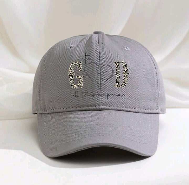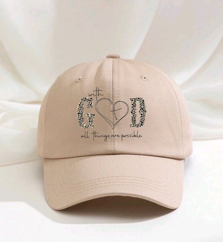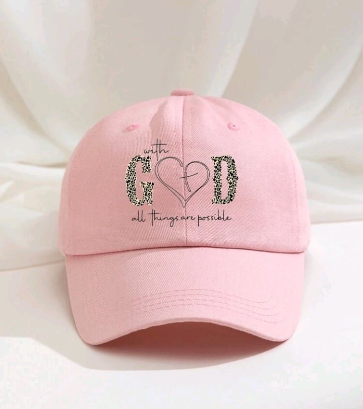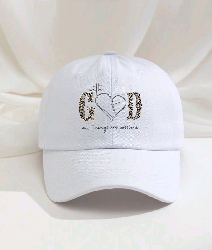 1pc Printed "With GD, All Things Are Possible" Baseball Cap, Breathable Adjustable Golf Sun Hat, Fashionable Curved Brim Sun Hat, Unisex Y2K Style Valentine's Day Valentines