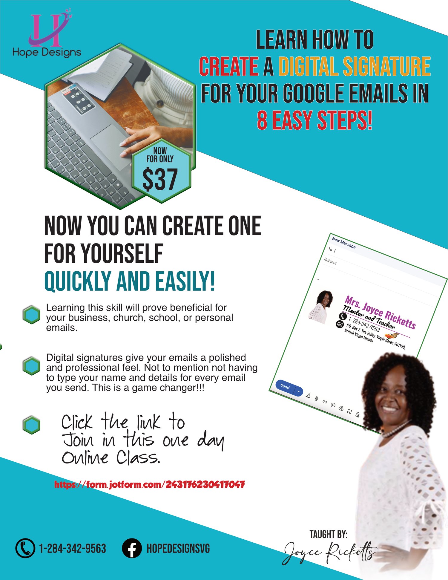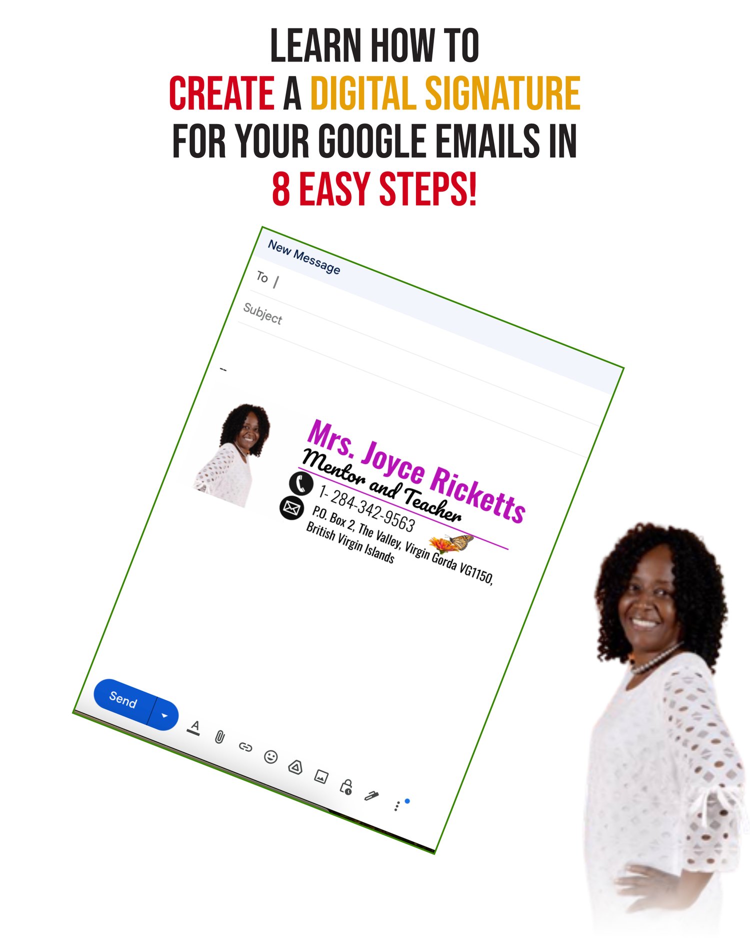 Digital Signatures add a level of professionalism to your emails and the best part is that it saves you time! No longer will you have to type and re-type your contact details at the end of every email. Create it once and it will be there for every email that you send out!