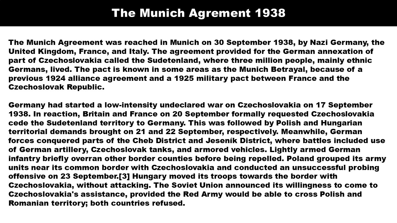 In Munich, from 1935 to 1941, the Nazi Party held large-scale rallies, particularly the annual Nuremberg Rallies, which were significant propaganda events. These rallies, often held in Munich's Königsplatz, were meticulously staged to showcase Nazi power and ideology. The Munich Agreement, signed in 1938, was also a major event in Munich, where Germany, the UK, France, and Italy agreed to German annexation of the Sudetenland.
