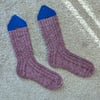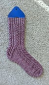 The Aviation Socks have columns of wings flying over a stretchy ribbed background, which continue down into the heel and over the instep. Of course, you don't have to knit them in purple, but the stitch pattern will show up best if you choose a solid or semi-solid yarn.