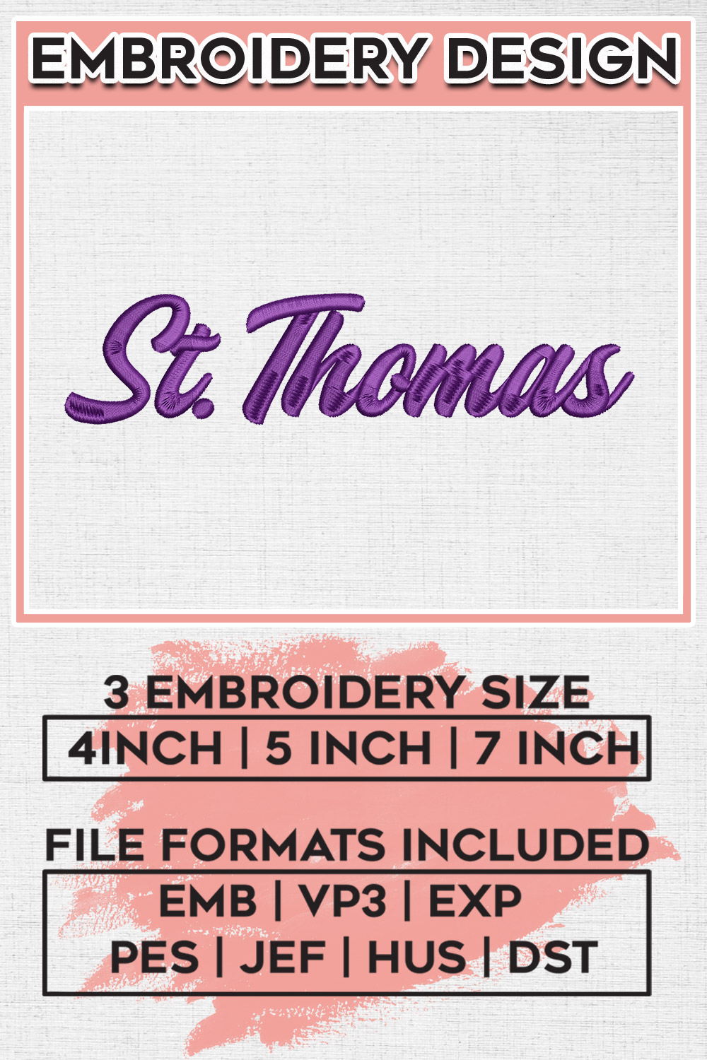 St. Thomas- Minnesota Tommies Wordmark Logo Embroidery Designs, Ncaa Logo Embroidery Files, The University of St. Thomas Logo Embroidery Design, NCAA St. Thomas Minnesota Tommies Machine Embroidery Design, Digital Download