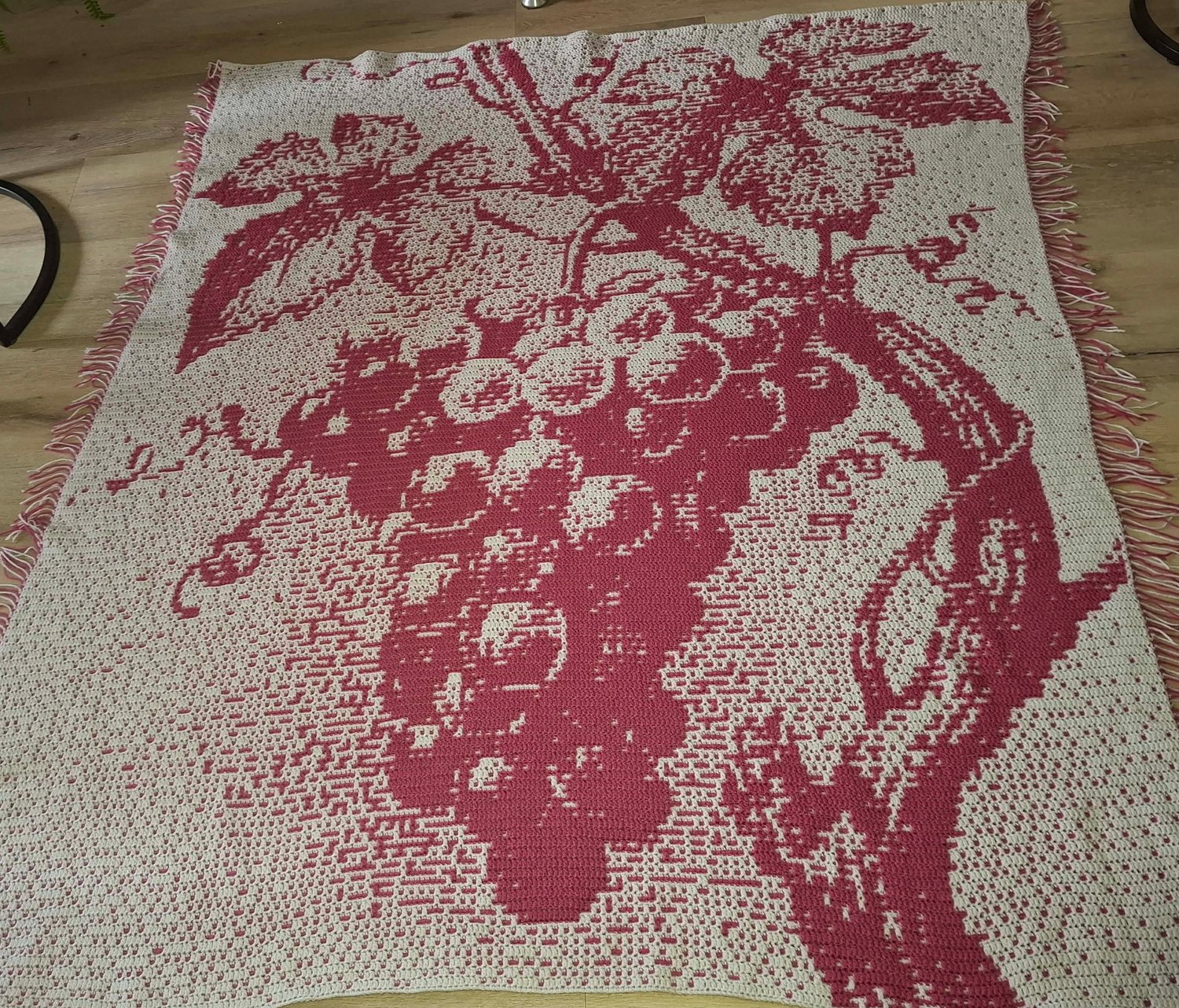 Overlay Mosaic Crochet Throw, GRAPES 2, Written patter row by row, Big Chart with Xs, PDF instant download