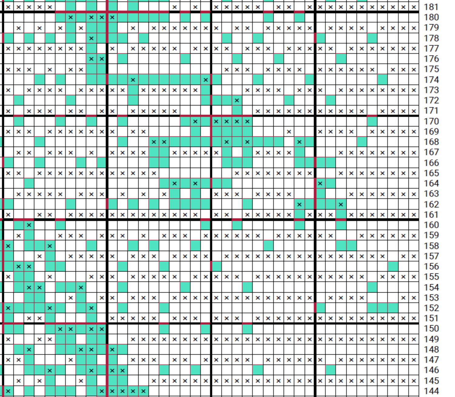 - Big Chart with Xs Colours Used: 2 (But if you are skilled in the technique, feel free to use as many colours as you want)