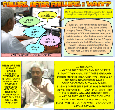 Chris K. H. Teo. Ph.D. was a former Professor of Botany. In May 1995, he and his wife Beng Im started CA Care. Our mission is to help the hopeless and helpless cancer patients find their healing. When you are told that you have no hope, we believe that there is still hope. To know more click these links: