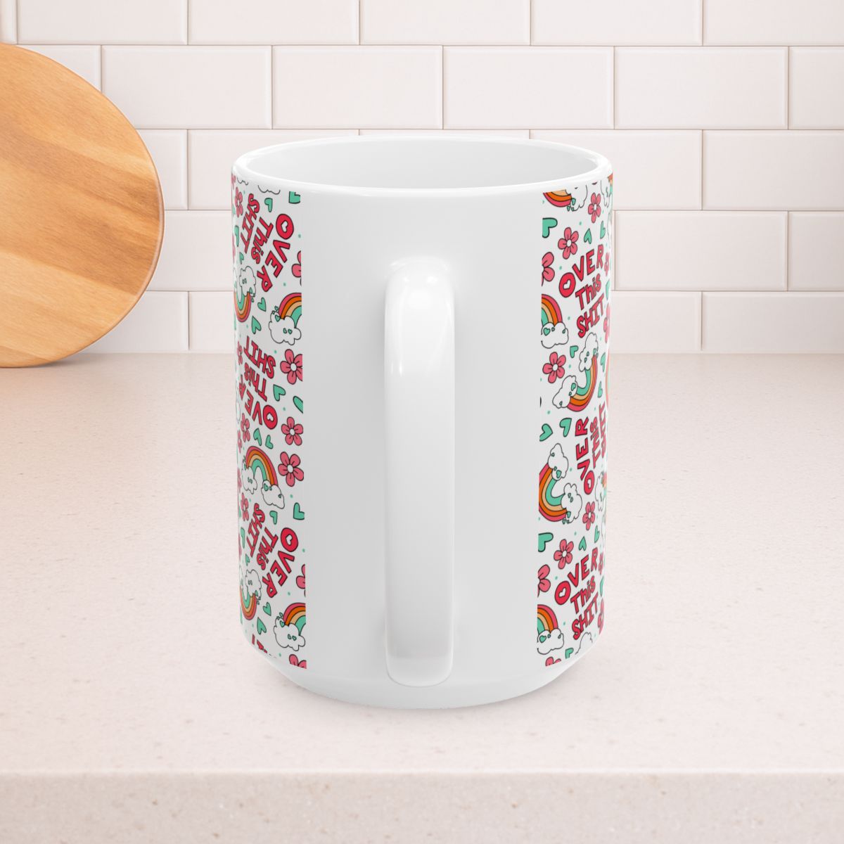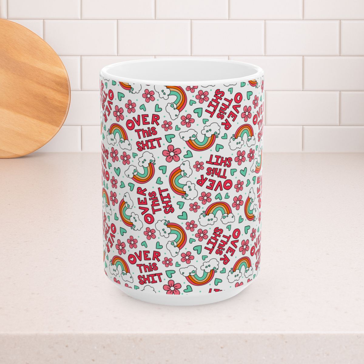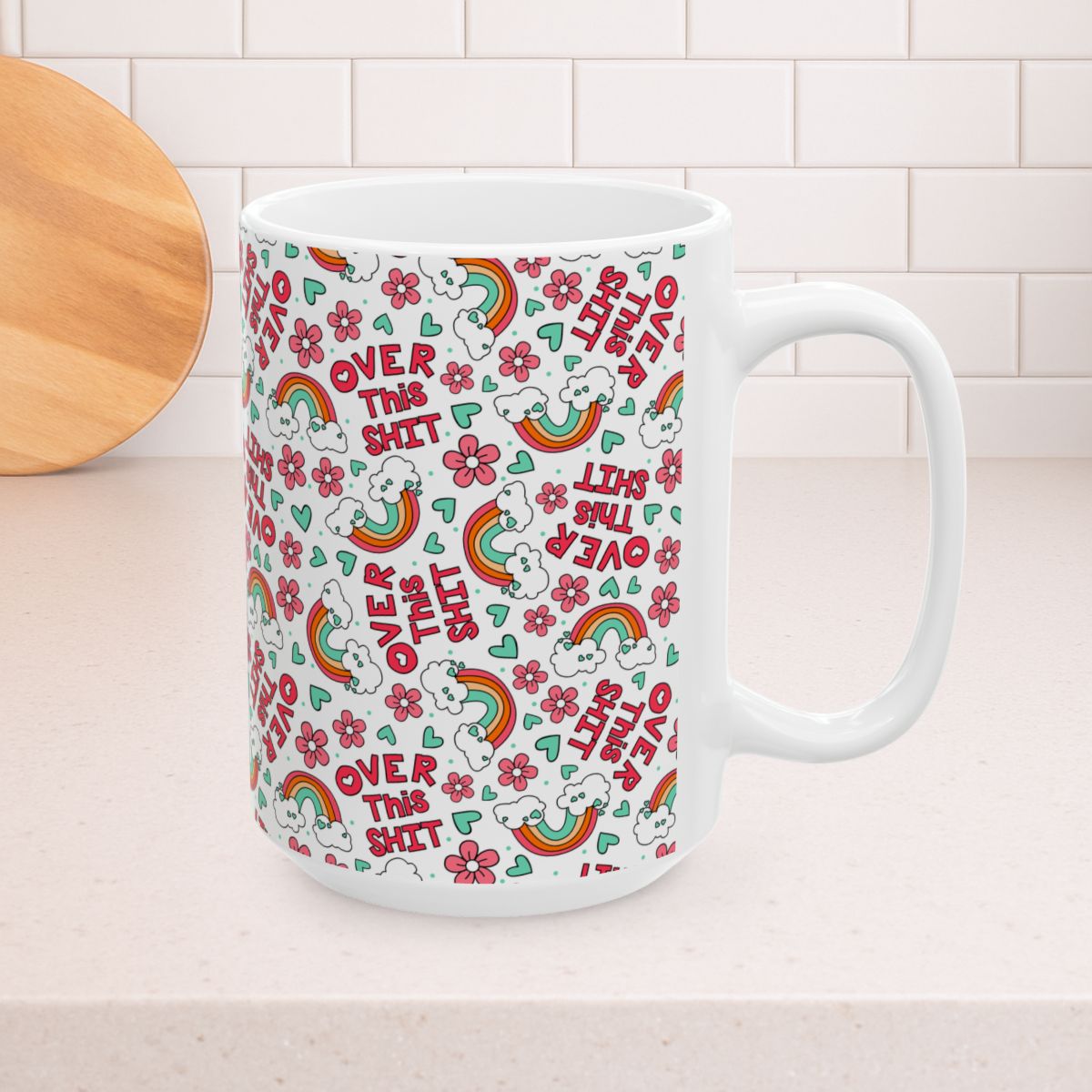 Over This Shit 15oz Ceramic Mug, Large Coffee Cup, Swear Words, Pretty Profanities, Rainbows