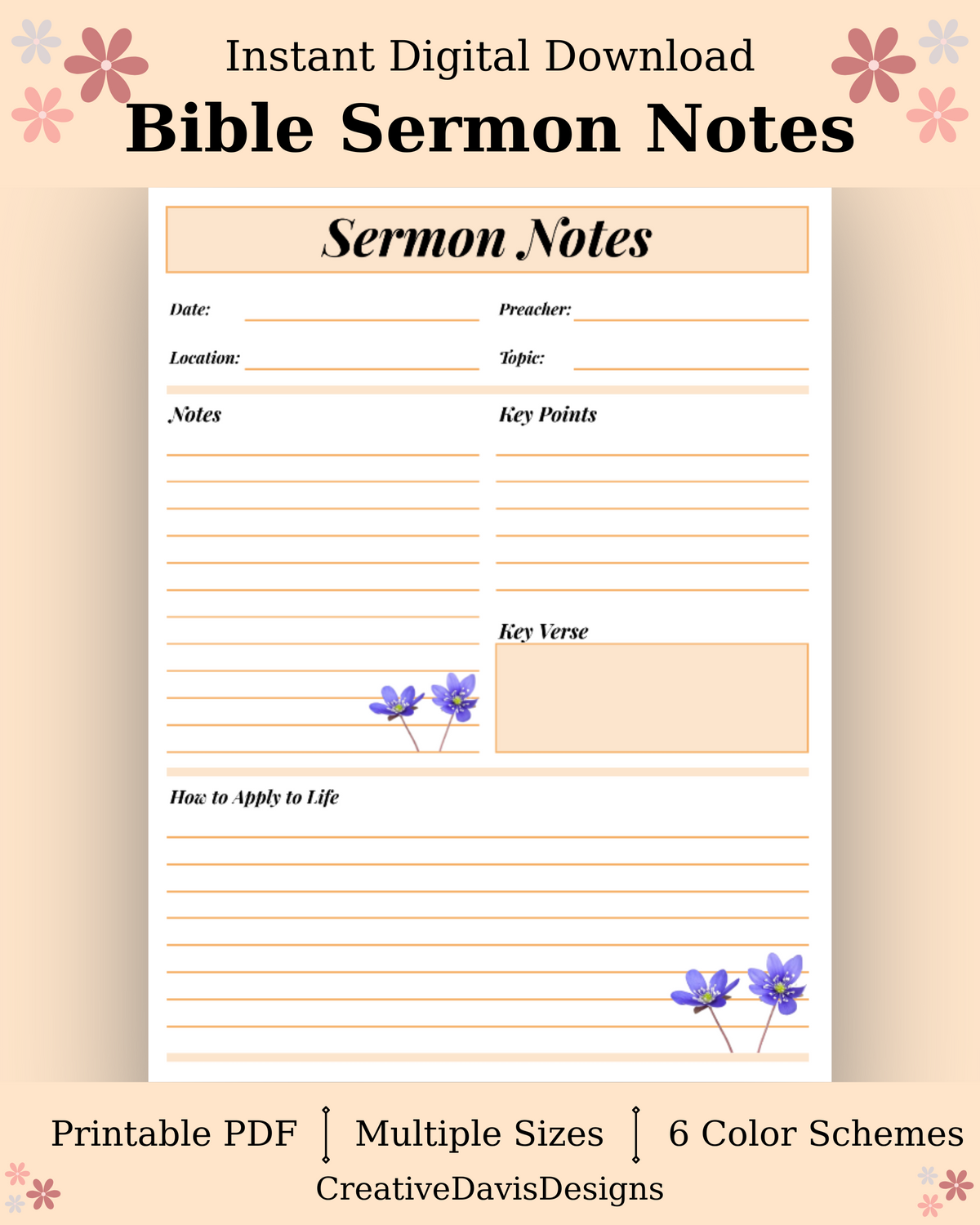 Use this helpful sheet to help you keep track of and understand sermons in a deeper meaning.