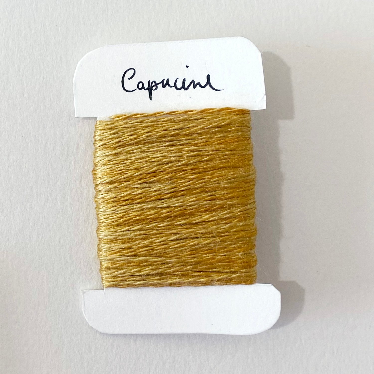 Mulberry silk embroidery thread (16/2), length 12 meters, hand-dyed individually in the process of my researching historical dyes. All these colours come from classic natural dyes such as indigo, weld, lac, sappanwood, safflower, madder and combinations thereof.