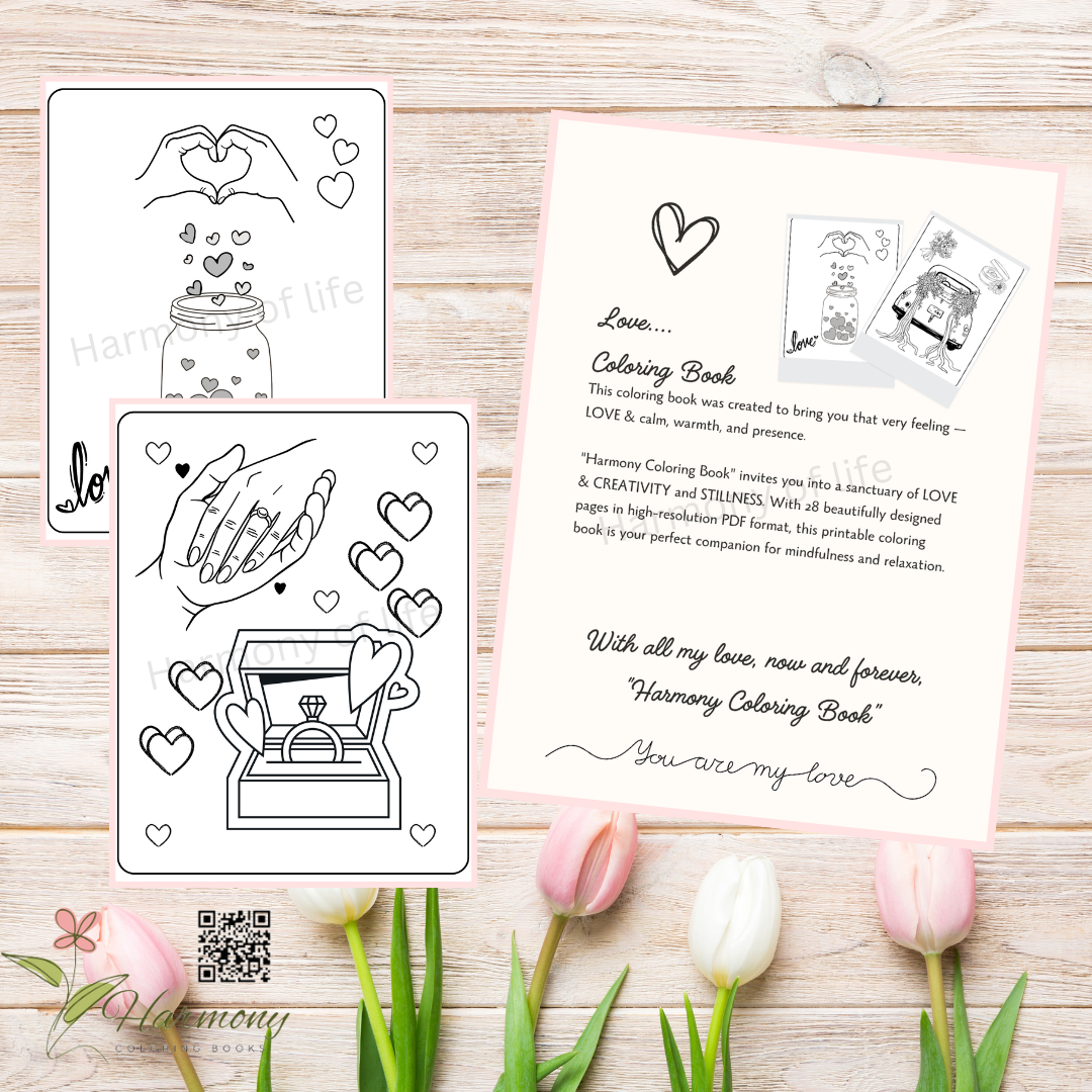 "Harmony Coloring Book" invites you into a sanctuary of LOVE & CREATIVITY and STILLNESS. With 28 beautifully designed pages in high-resolution PDF format, this printable coloring book is your perfect companion for mindfulness and relaxation.