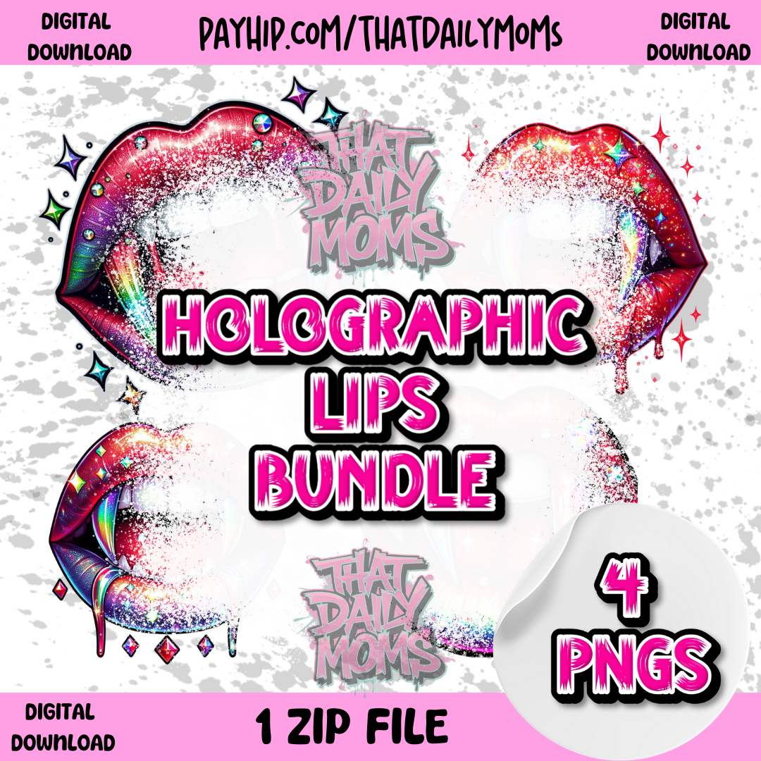 Holographic Rainbow Lips Bundle | PNG | Digital Download