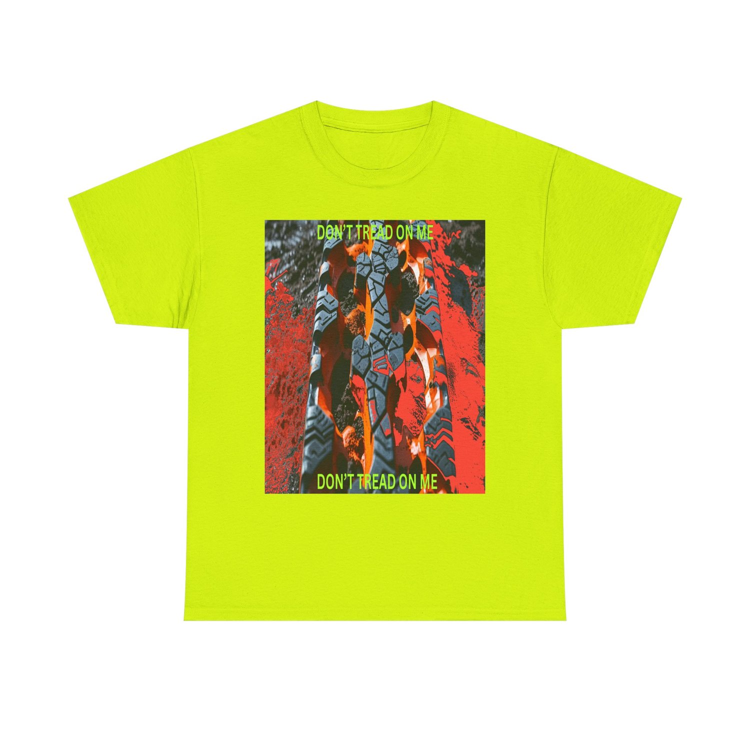 Stand your ground in bold style with this high-visibility "Don’t Tread On Me" t-shirt. Designed for road crews, heavy-duty workers, and anyone who takes pride in hard work, this shirt features a gritty boot-print graphic over a rugged red dirt backdrop. Printed on a bright safety green tee for maximum visibility, it’s a statement of strength, grit, and respect.